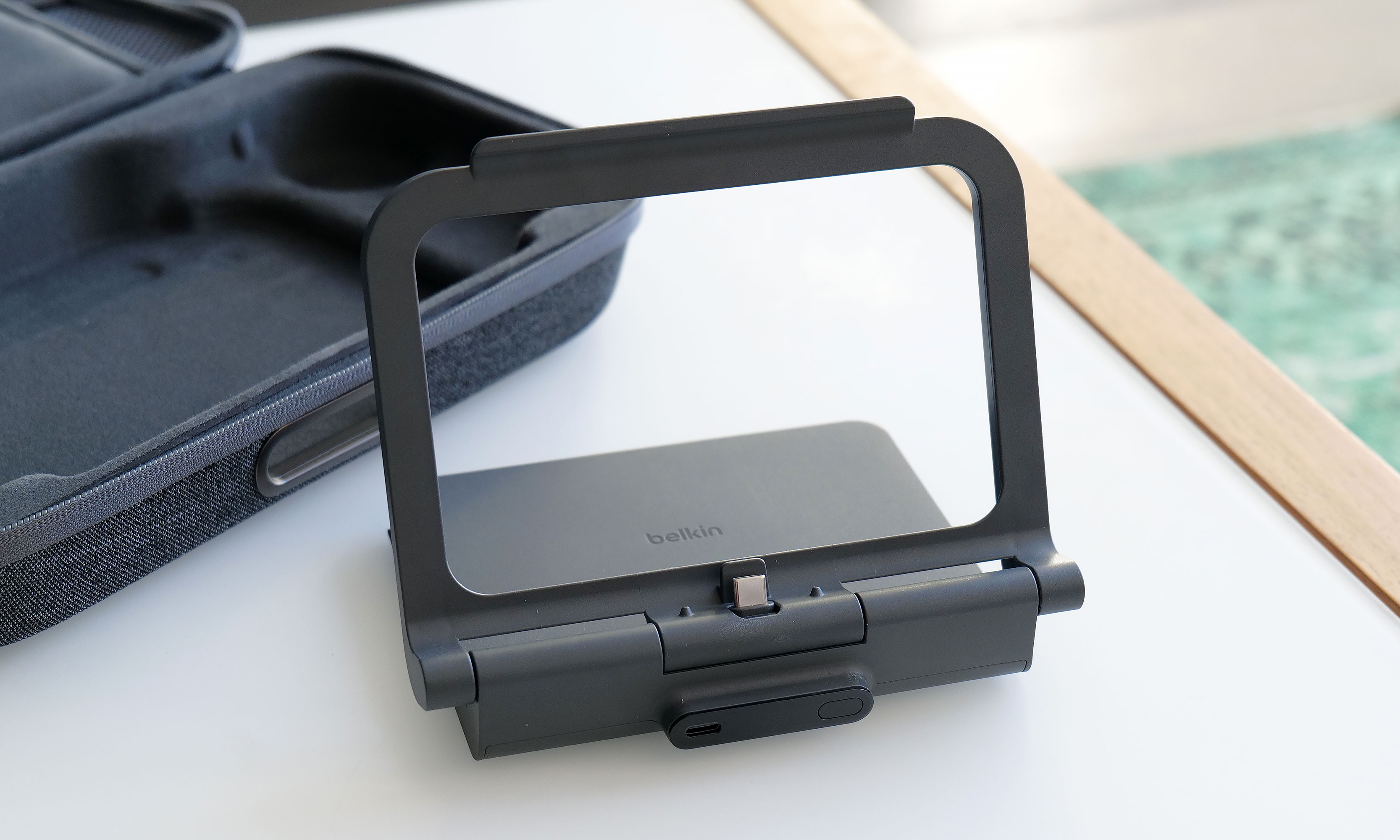 However, the biggest change to the Pro Charging Case's exterior design is a new cutout on the front edge, which allows you to top off other gadgets (or a Switch) by plugging a USB-C cable into Belkin's included battery pack. Unfortunately, the case doesn't come with a cord, which seems a bit odd until you take a closer look at the power pack's layout. That’s because once you open up the case, you’ll see a second port designed to fit right into the bottom power jack on the Switch 2 without the need for a cable.